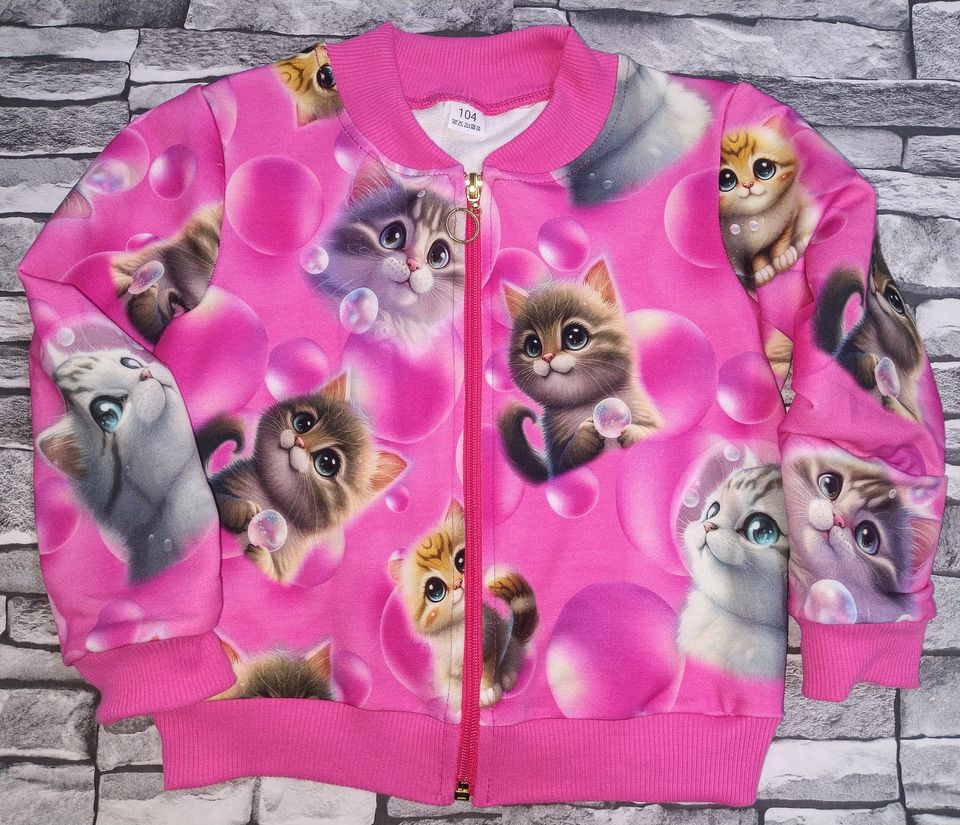 Väga armas kiisuga jakk. Jakil küljel taskud, eest lukuga.
