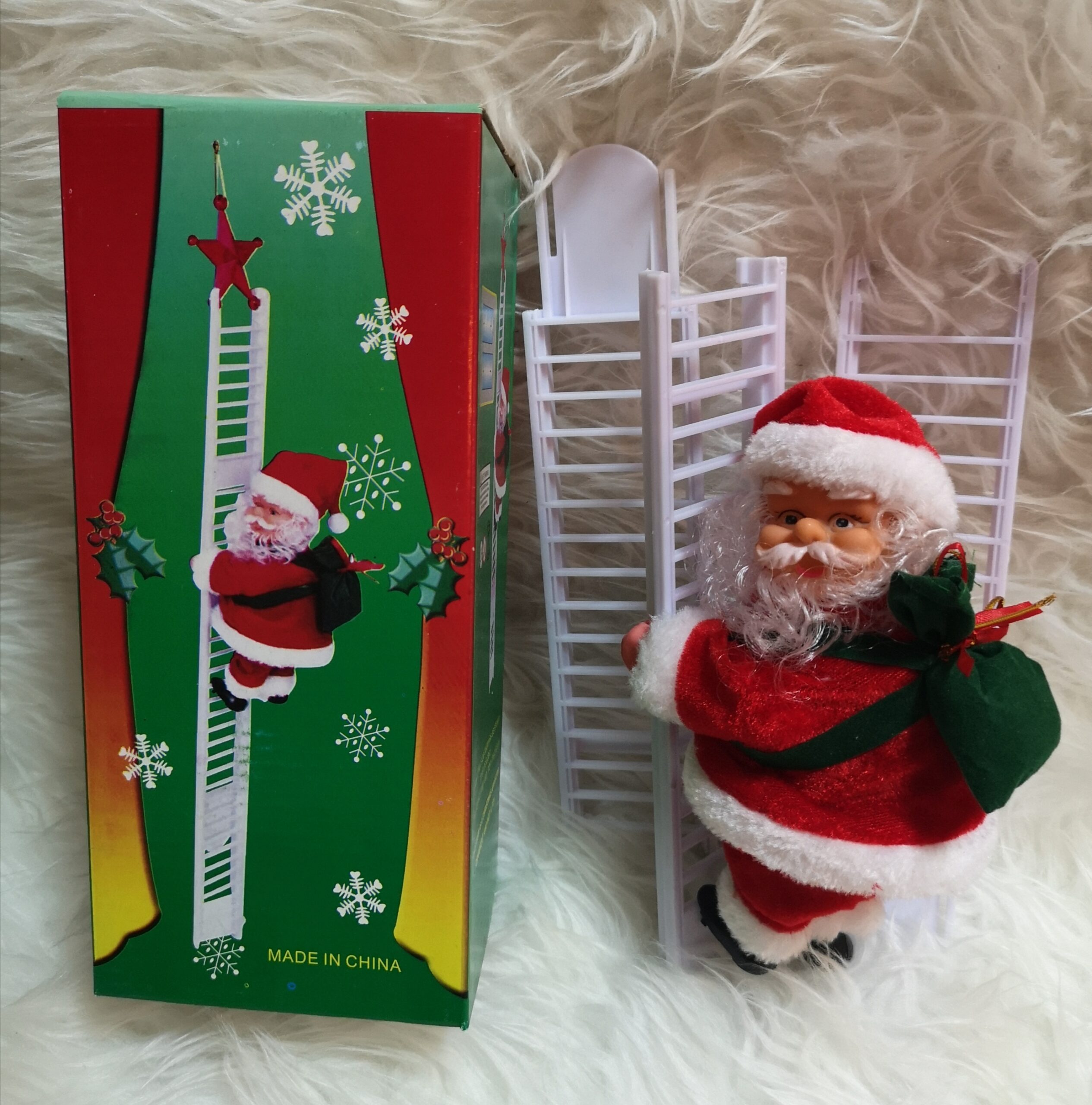 Vahva redelil roniv jõuluvana. Ronides kõlab jõulumuusika.