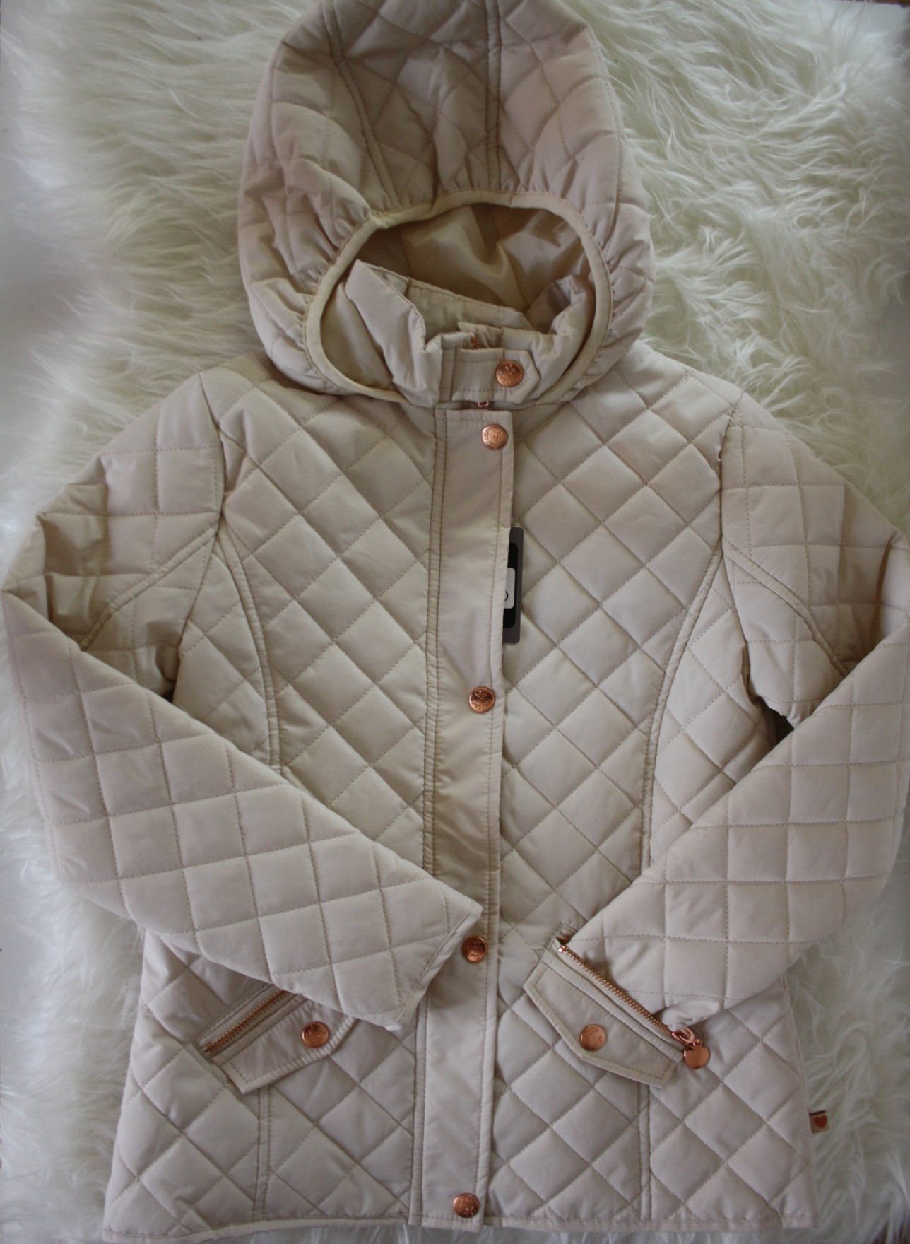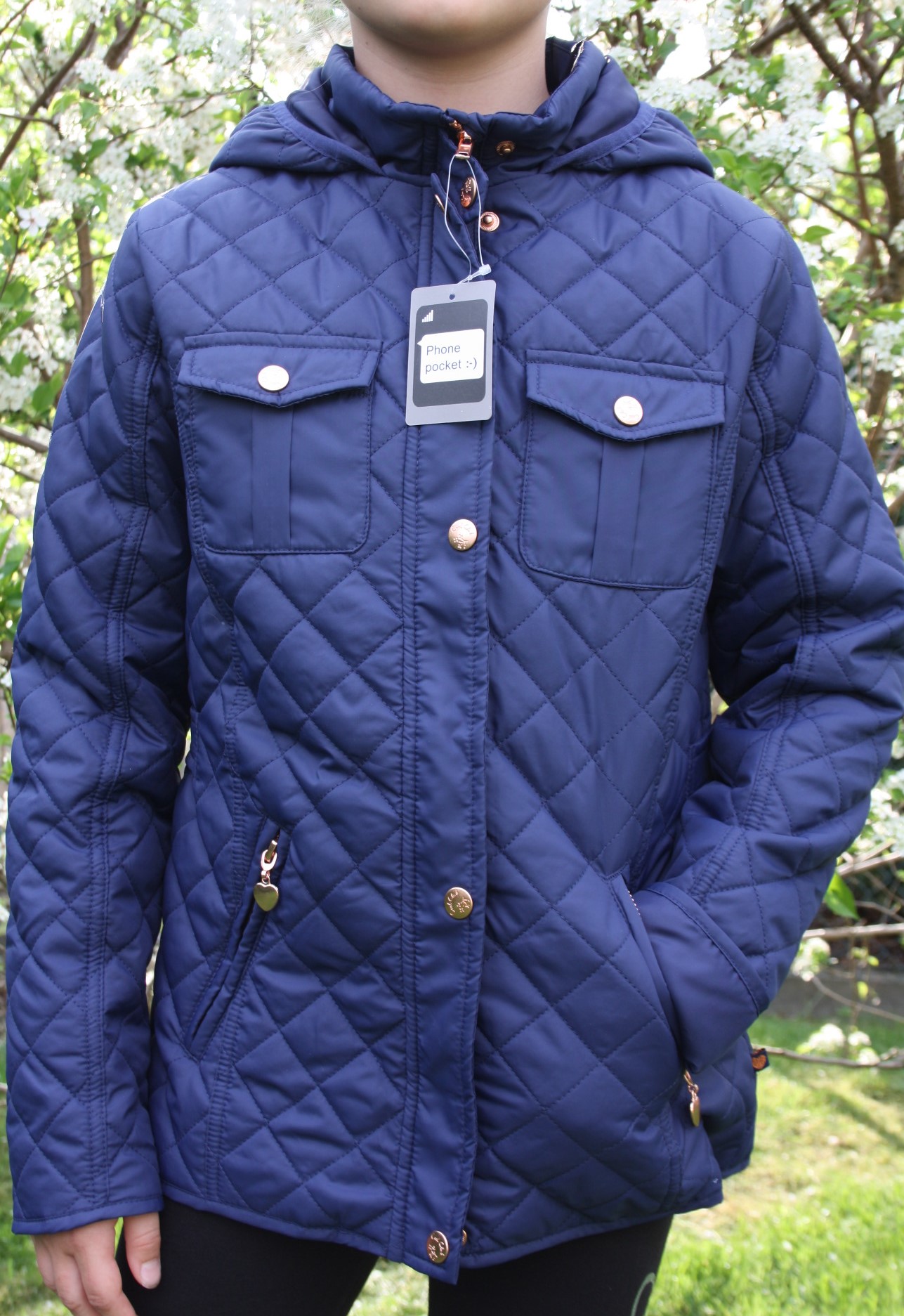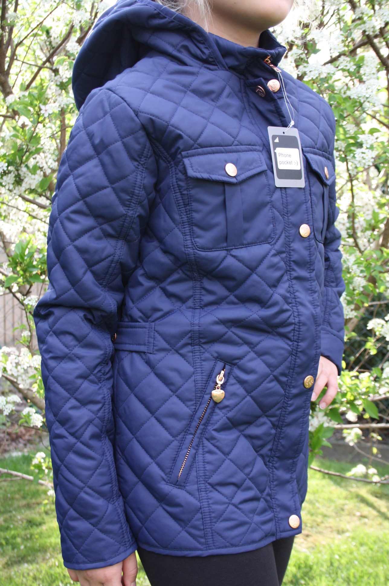 Õhukese voodriga tepitud jope tüdrukutele. Jopel 2 lukuga taskut, kapuuts ja kaunis kuldne lukk.