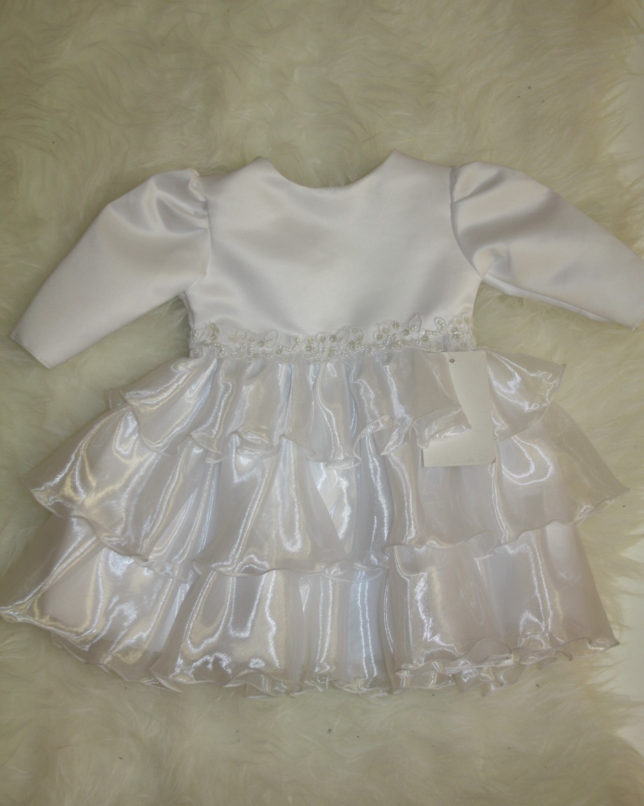 Kaunis satsiline lumivalge kleit väikesele printsessile. Seljal lukk.