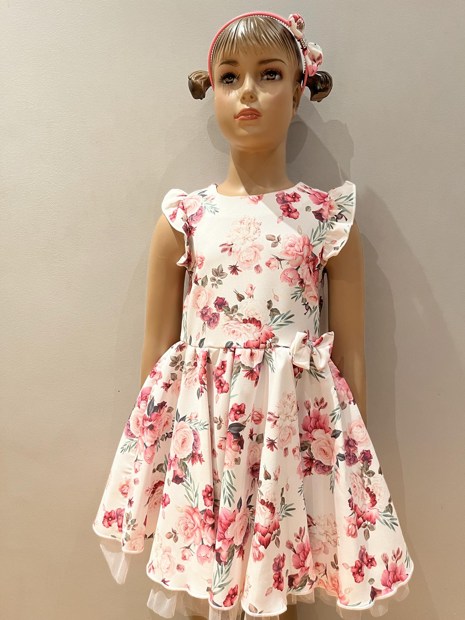 Kleidil seljal lukk, seelikuosa ratasklošš. Komplektis ka peavõru.