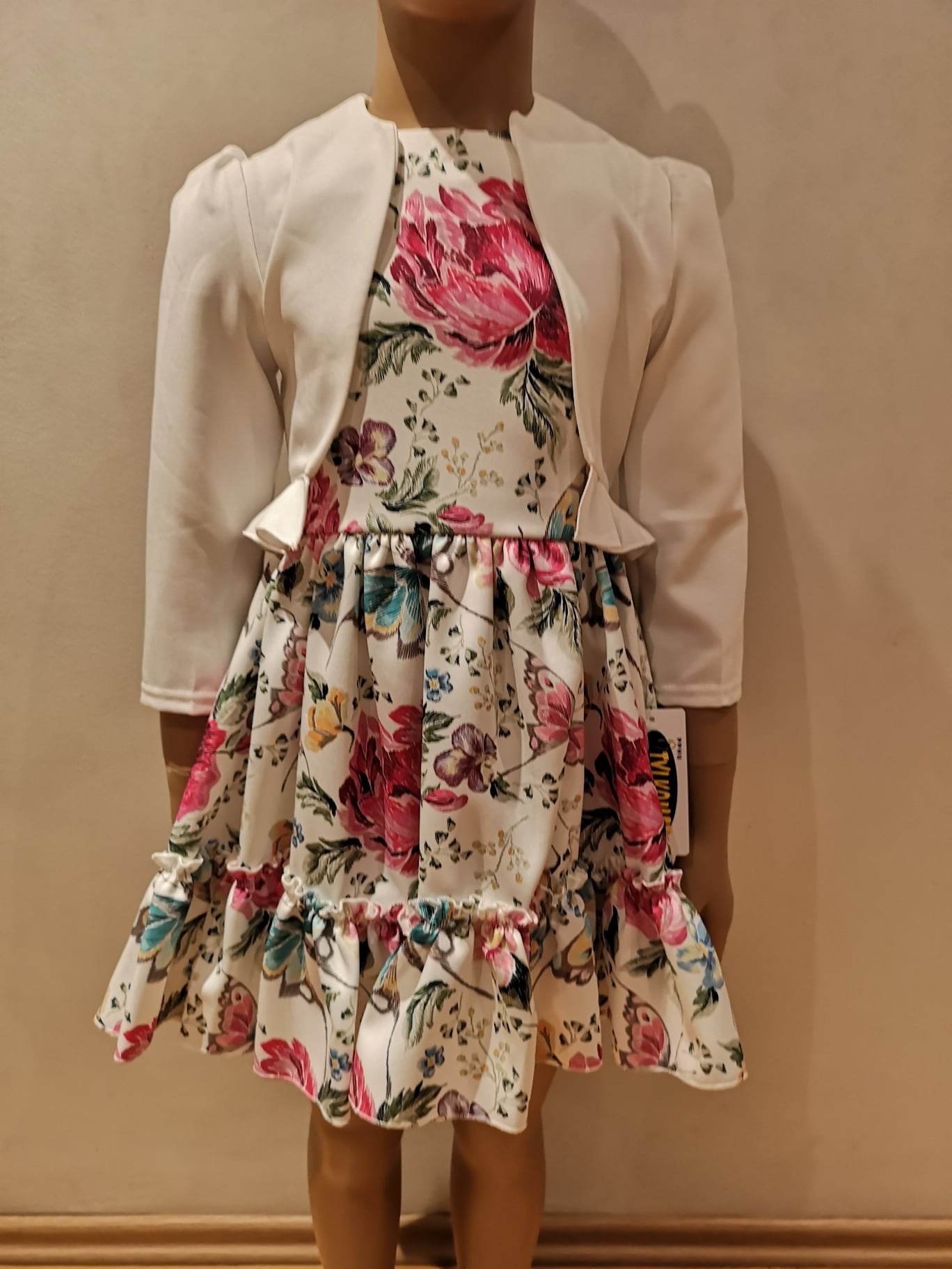 Väga ilus lilleline kleit koos kauni booleroga. Kleidil seljal lukk.