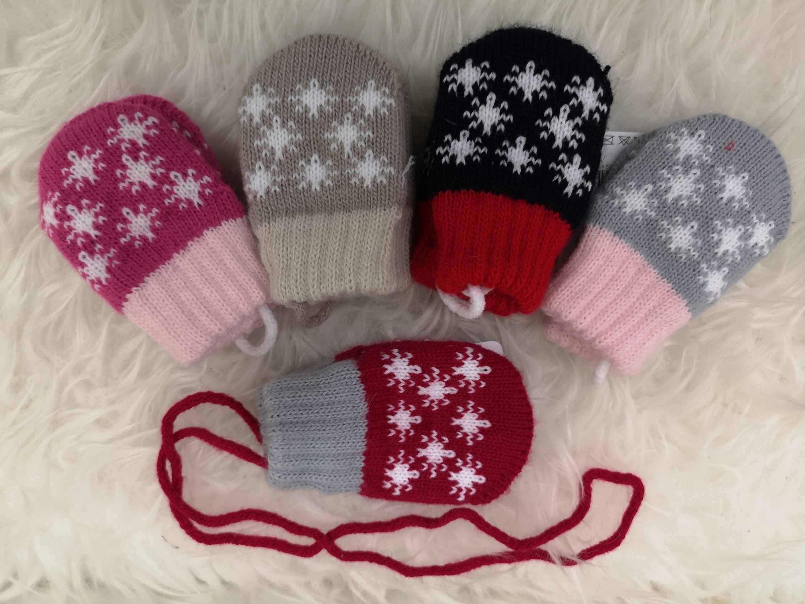 Paksemad kootud labakindad pere kõige pisematele. Kinnastel puudub pöial, et pisikestele saaks kinnast paremini kätte panna. Kinnastel küljes pael, et lapsel kindad ära ei kaoks.