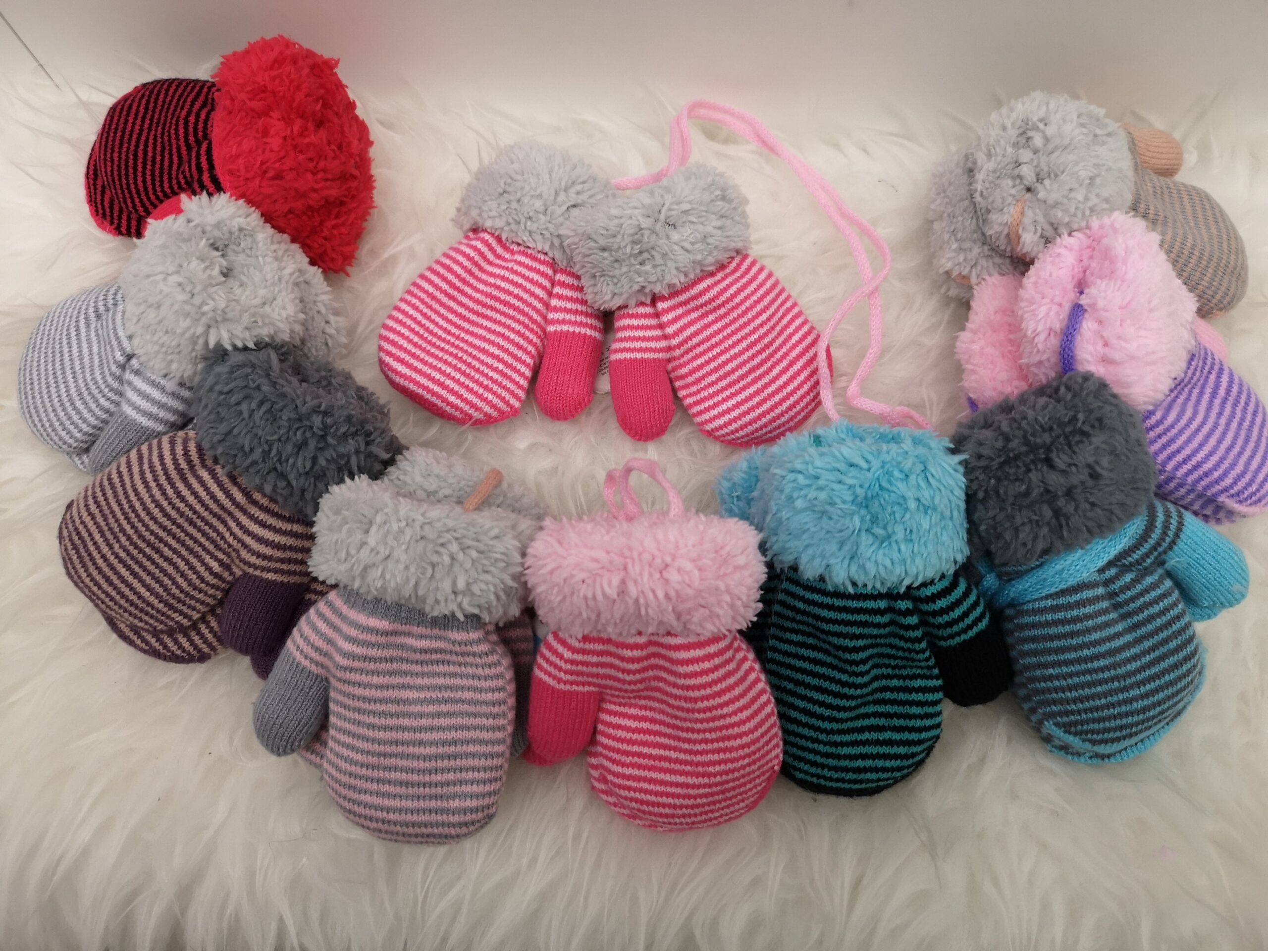 Paksemad kootud labakindad pere kõige pisematele. Kinnastel sees karvane vooder ja küljes pael, et lapsel kindad ära ei kaoks.