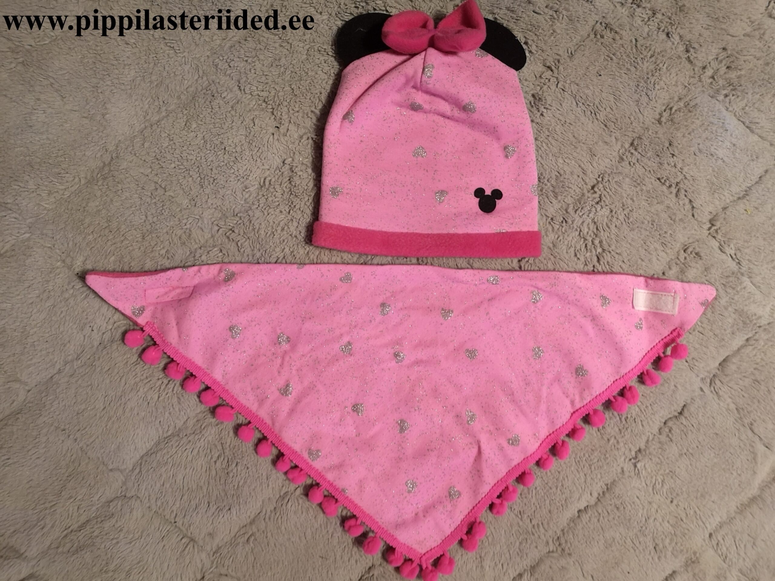 Vahva mütsi ja salli komplekt. Mütsil sees soe fliis, sallil takjakinnitus.